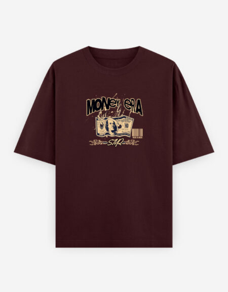The STYQ Money Era Oversized T-Shirt – 100% super combed cotton (240 GSM), bio-washed, pre-shrunk, with Lycra ribbed neck and unisex oversized fit. Available in Black, Navy Blue, Maroon, and Petrol Blue.