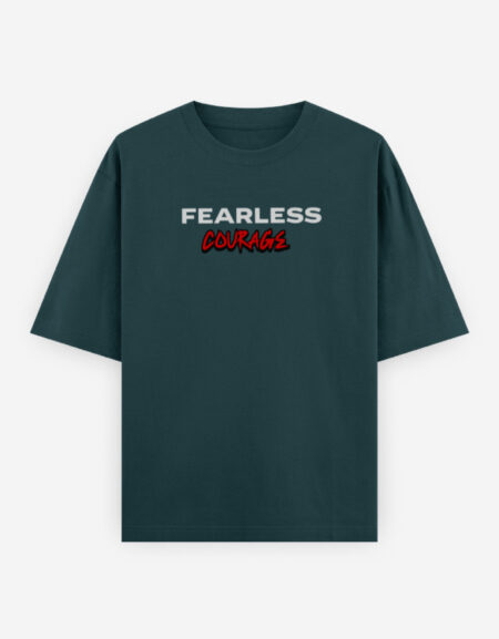 The STYQ Fearless Courage Oversized Classic T-Shirt – made from 100% super combed cotton (240 GSM), bio-washed & pre-shrunk for softness and durability. Features a Lycra ribbed neck and unisex oversized fit. Available in Black, Purple, Navy Blue, Bottle Green, Royal Blue, Petrol Blue, Olive Green, and Maroon.