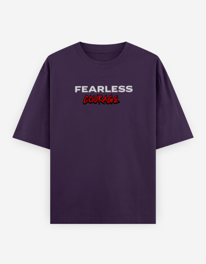The STYQ Fearless Courage Oversized Classic T-Shirt – made from 100% super combed cotton (240 GSM), bio-washed & pre-shrunk for softness and durability. Features a Lycra ribbed neck and unisex oversized fit. Available in Black, Purple, Navy Blue, Bottle Green, Royal Blue, Petrol Blue, Olive Green, and Maroon.