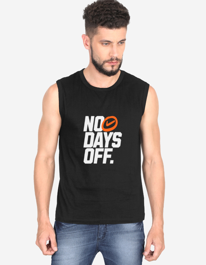 No Days Off Gym Vest – sleeveless motivation for every rep. 100% Cotton, Super Combed, Pre-Shrunk, Bio-Washed, Folded Neck, Regular Fit. Soft, breathable & durable.