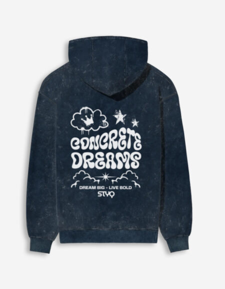 SaleSelect options This product has multiple variants. The options may be chosen on the product page Quick View₹2,599.00Original price was: ₹2,599.00.₹1,899.00Current price is: ₹1,899.00.The STYQ Concrete Dreams Unisex Acid Washed Hoodie – made from 100% super combed cotton (300 GSM) with acid-wash finish, derby ribbed hem & cuffs, and unisex regular fit. Available in Black, Bottle Green, Maroon, and Navy Blue.