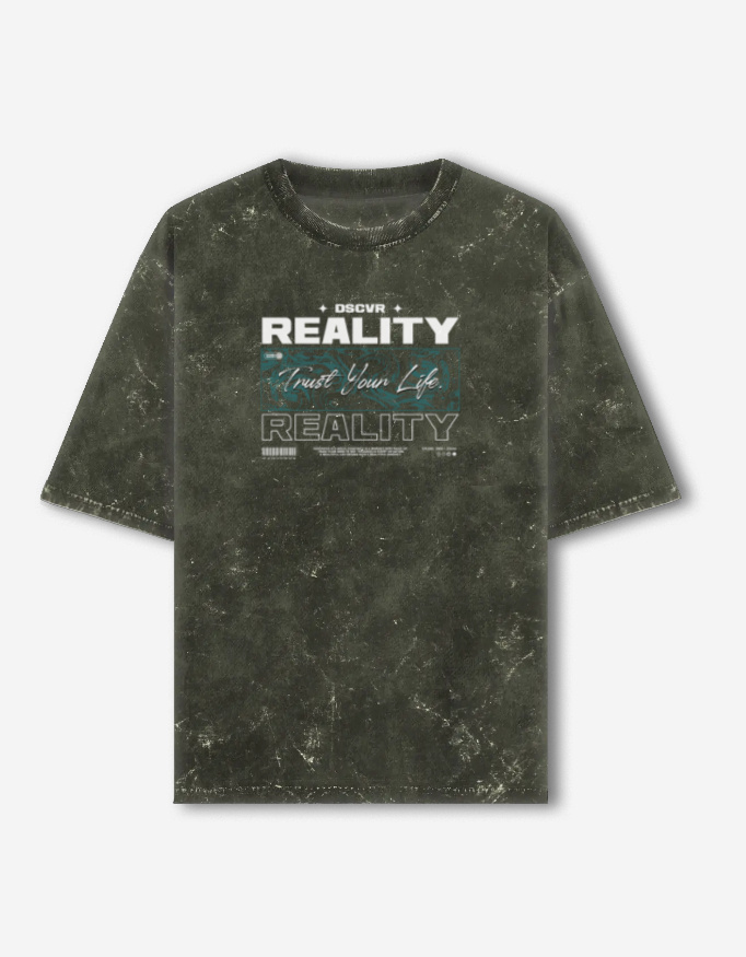 The STYQ Acid Washed Oversized T-Shirt, featuring the DSCVR Reality print, combines a unique acid wash effect with a relaxed unisex oversized fit. Made from heavyweight 100% cotton (240 GSM), available in Black, Bottle Green, Maroon, Navy Blue, and Olive Green, it’s perfect for bold streetwear style.