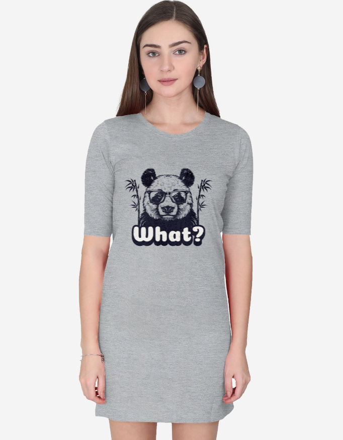 Bring fun to your streetwear with the STYQ Panda What? T-Shirt Dress – made from 180 GSM 100% Super Combed Cotton with Side Pockets, Lycra Ribbed Neck, and a Relaxed Fit for all-day comfort. Available in Grey Melange.